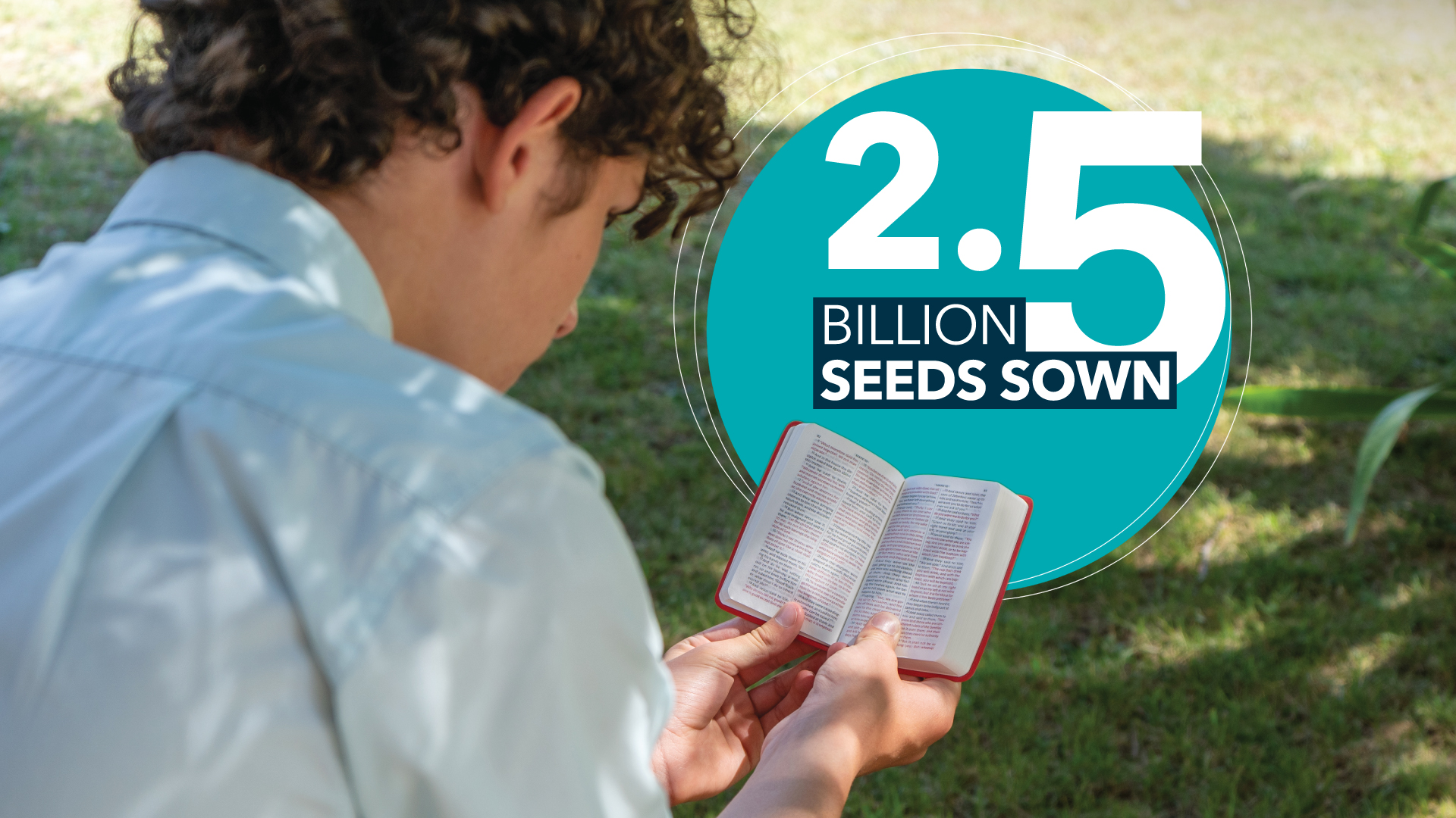 In October 2022, we celebrated 2.5 billion seeds sown so men, women, boys, and girls may have the chance to continue experiencing the life-changing message of Jesus Christ through His Word. In response to this incredible achievement, former International Auxiliary President Cindy Davis says, “Praise God for every member, Friend, donor, prayer, Scripture, and especially for every soul saved!” While we celebrate what God has done, we know there is more planting and watering to be done. Many people will go to bed tonight without knowing the Saviour that gave His life for them. May we, by His grace alone, continue to reach a lost and dying world with the truth of God’s Word until Jesus returns.