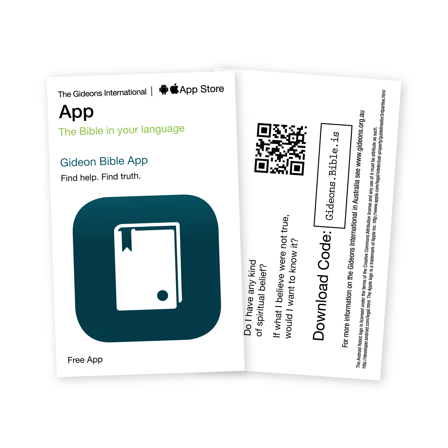 Pack containing one hundred cards with details on how to download the free Gideons Bible App.